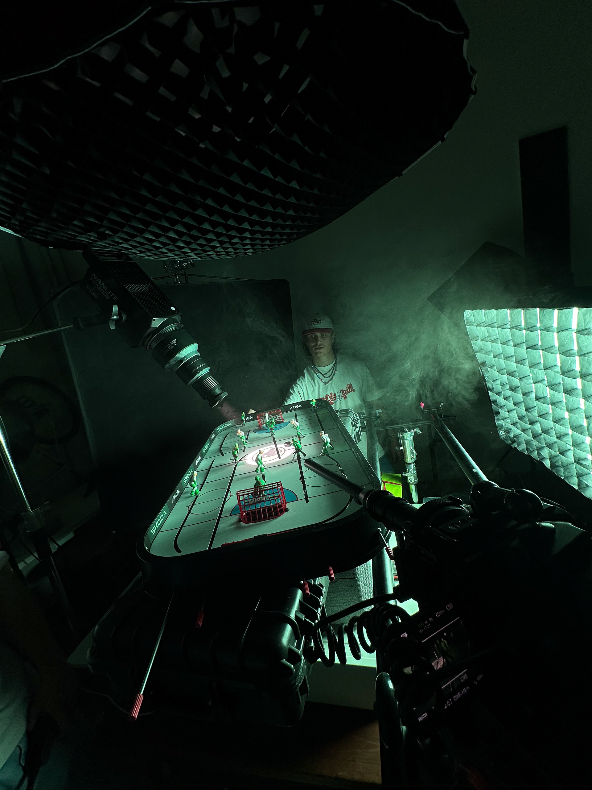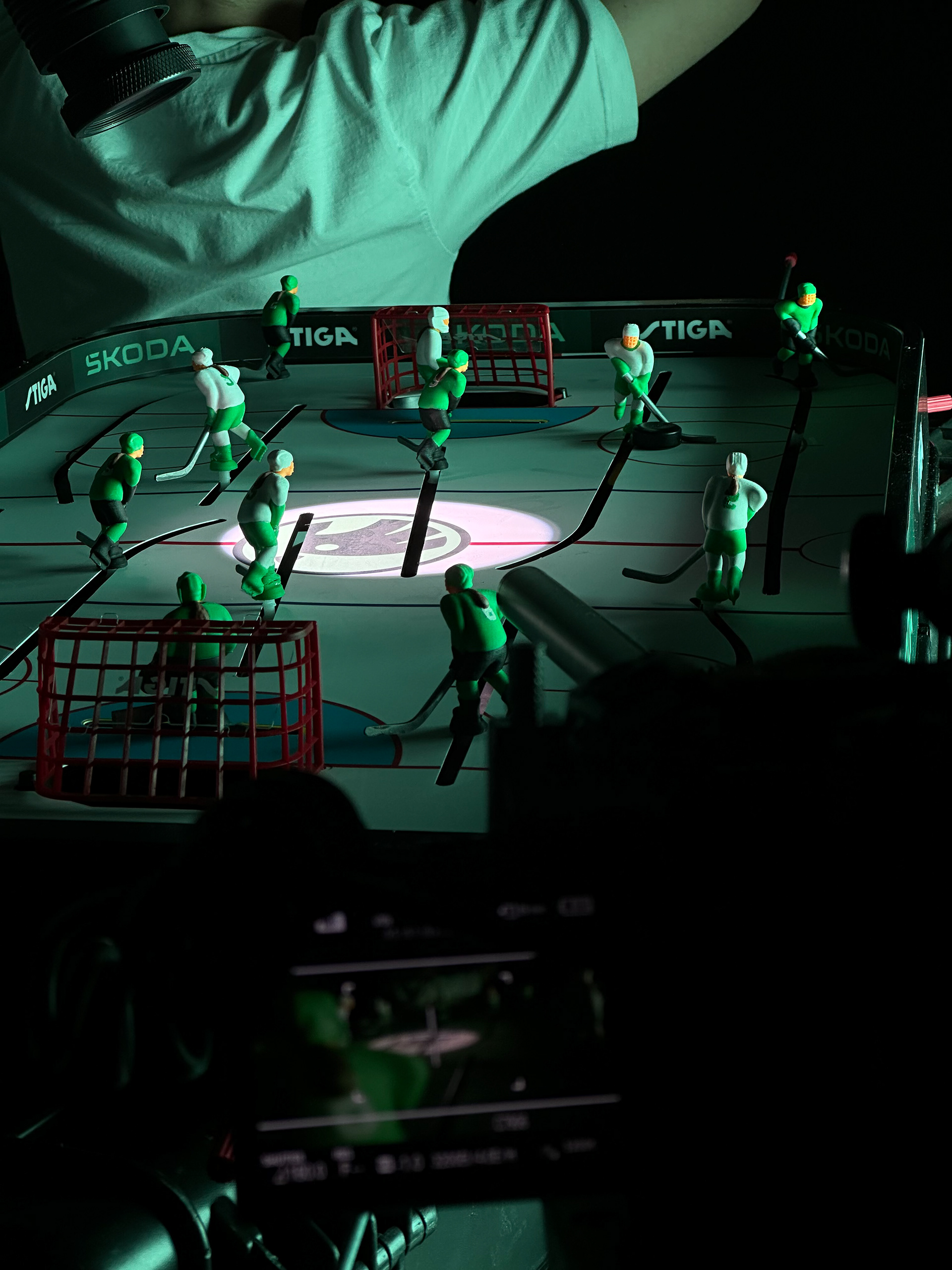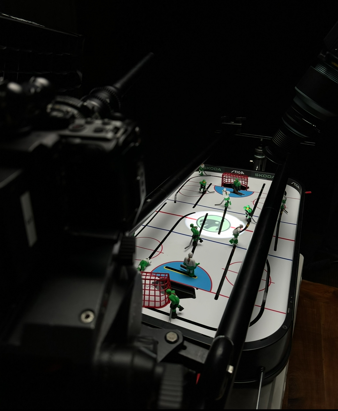 The project was built entirely around macro lenses, which defined the visual approach. It was the first-ever girls’ Stiga hockey game, featuring extremely small figurines and therefore demanding a custom technical solution. A specific shooting method had to be developed to translate the energy and emotion of professional ice hockey into a miniature tabletop world.